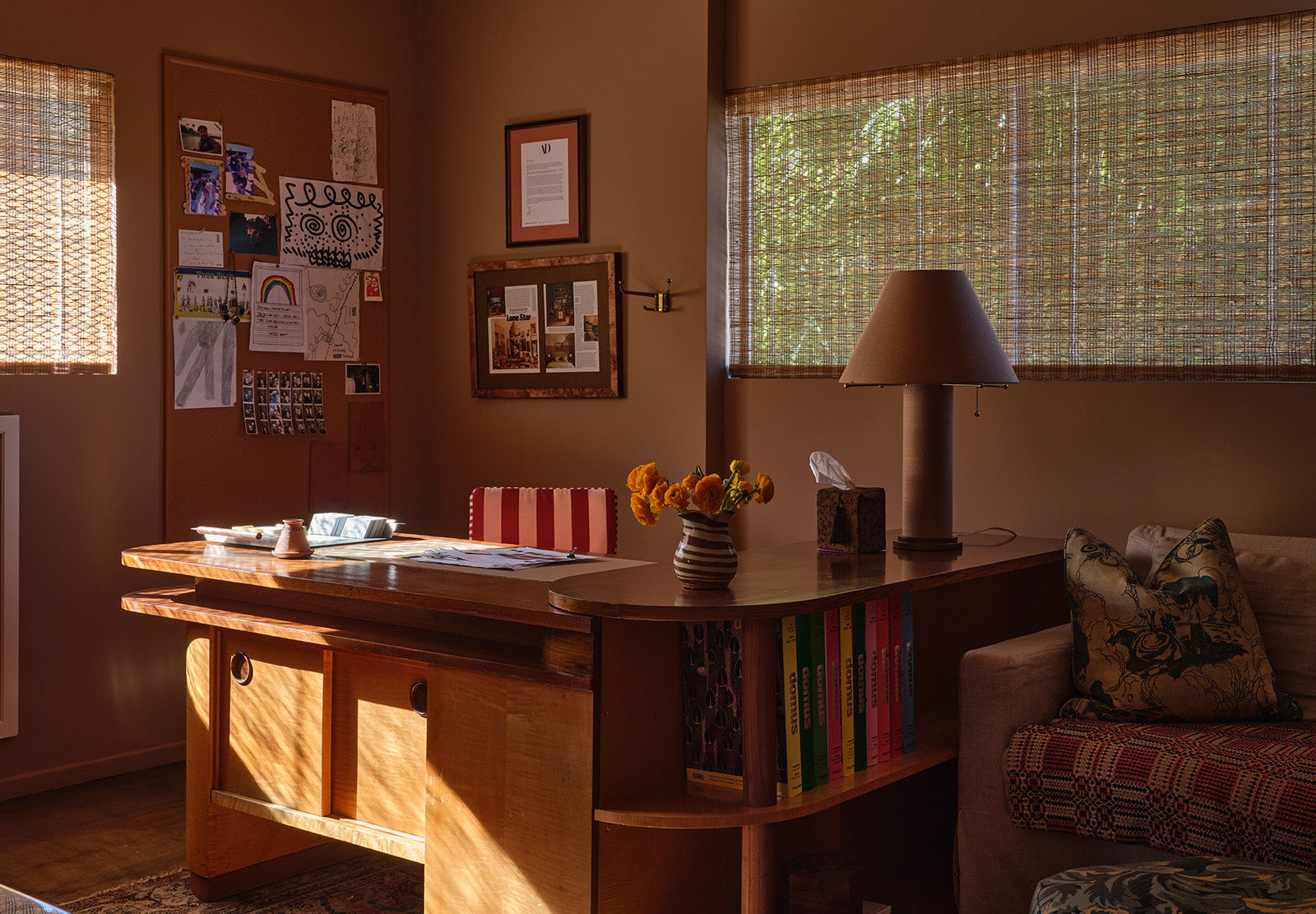 Known for their richly layered, lived-in interiors (notably Dakota Johnson’s midcentury sanctuary and Emma Robert’s LA home), the designers set about making their new Frogtown studio a home away from home.