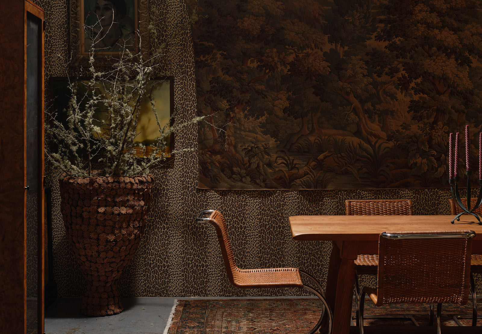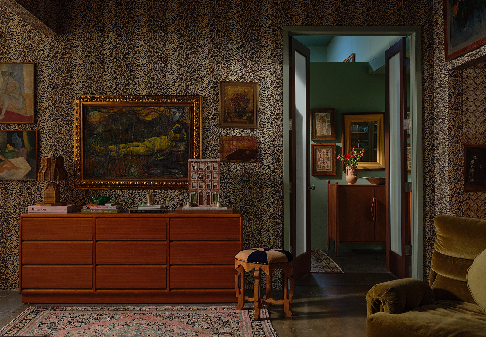 You really can’t overthink it. When you treat animal print as a neutral, it just works. We love that it brings in a little bit of funk, which makes it easier to mix different styles of art; suddenly photography and oil paintings can live together beautifully against a leopard backdrop.