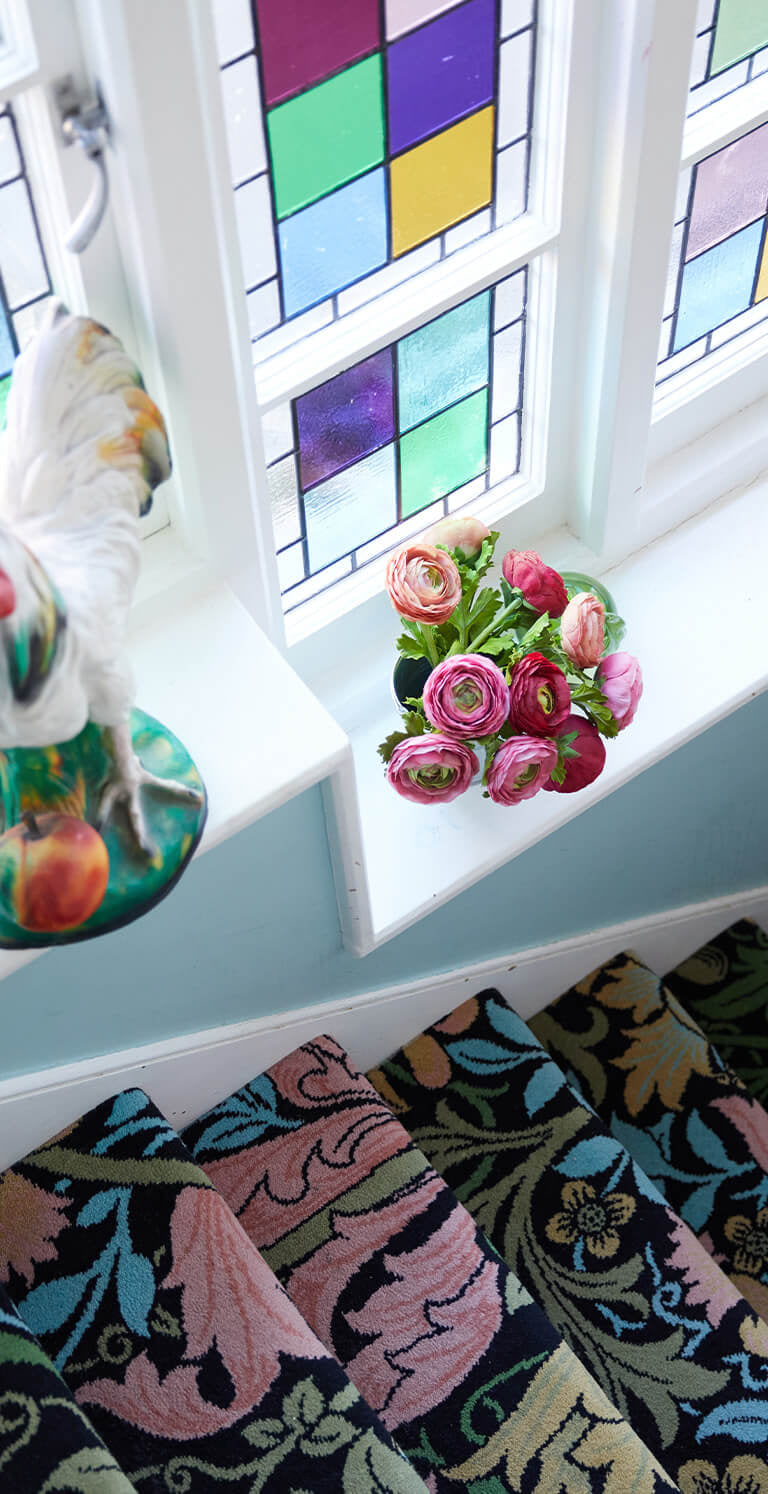 Sophie’s house was built as part of the Arts and Crafts movement so, honouring its history, she was inspired to bring in a touch of our House design hero, William Morris. A nod to the ARTEMIS wallpaper in her dining room, Sophie opted for the COMPTON carpet to dress her stairs. Originally created by Morris in 1896 for the interiors of Compton Hall in the West Midlands, intertwining tulips and poppies form a flowing pattern in this classic print, reimagined by House of Hackney in a palette of powder blue, pinks and greens against a backdrop of ‘Onyx’ black. Made in partnership with Royal warrant holding Axminster Carpets from responsibly sourced British wool, this luxurious flooring is sure to stand the test of time - even with 5 boys to contend with.
