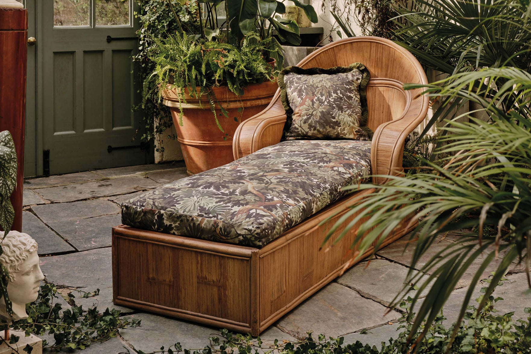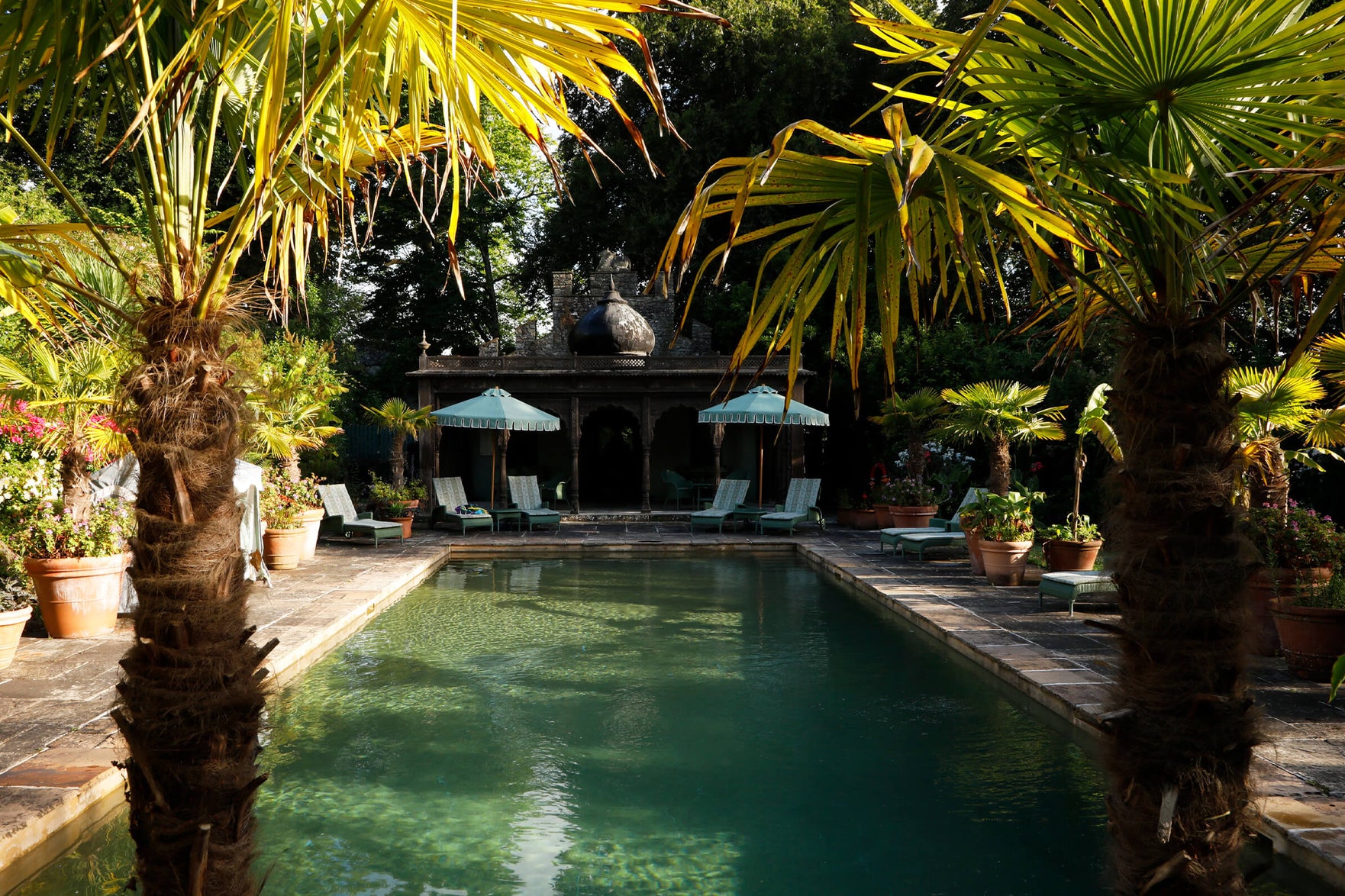 Within the wild gardens sit a 19th century gate lodge, transformed into an ode to William Morris; an old apple shed turned into a darkly romantic cabin with the florals of FLORIKA; a fleet of House of Hackney vintage caravans, and surrounded by sub tropical blooms, an Indian pool, imported as a token of love from a previous owner to another.